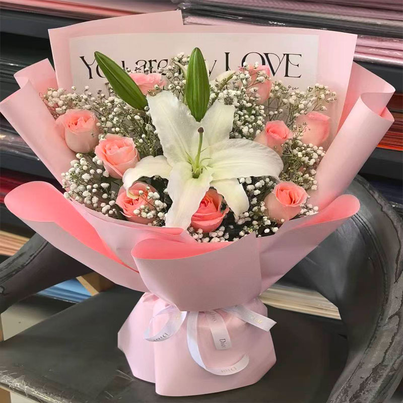 由于花材的季节原因和手工包扎,可能在花束的形式和搭配上与图片不完全一致,但我们保证鲜花的主花材品种、新鲜程度、数量、颜色与说明一致,谢谢。