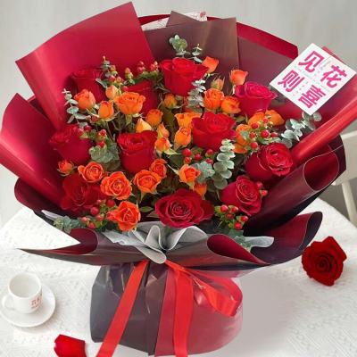 11支红玫瑰 橙色泡泡 红豆 尤加利搭配饱满